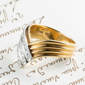 昭和レトロデザインリング K18 Pm ダイヤ 0.29ct 〜時代を感じさせないレトロモダンなコンビリング〜 OKR00079