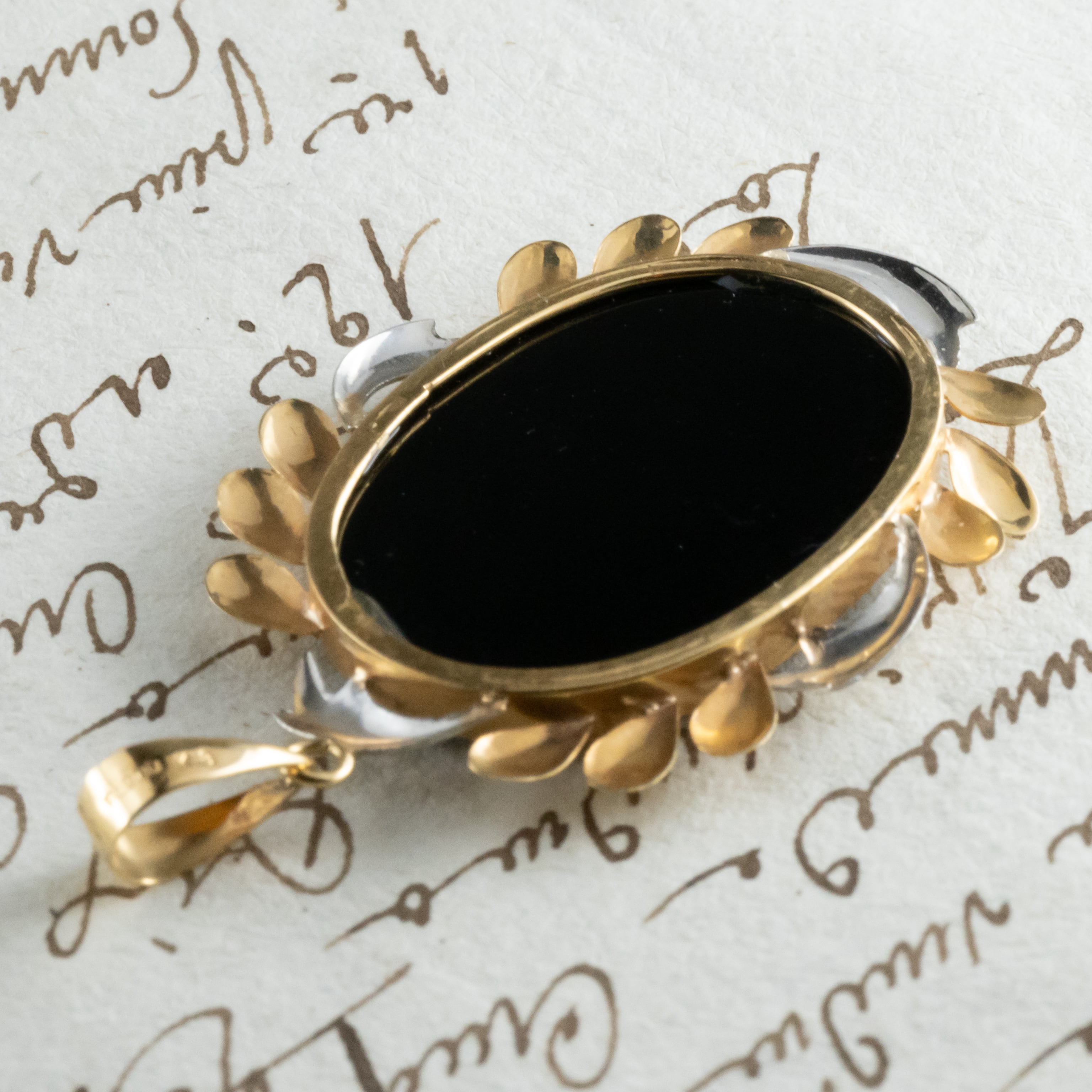 落ち着いた印象ながら華やかなデザインのこちらのカメオペンダント。