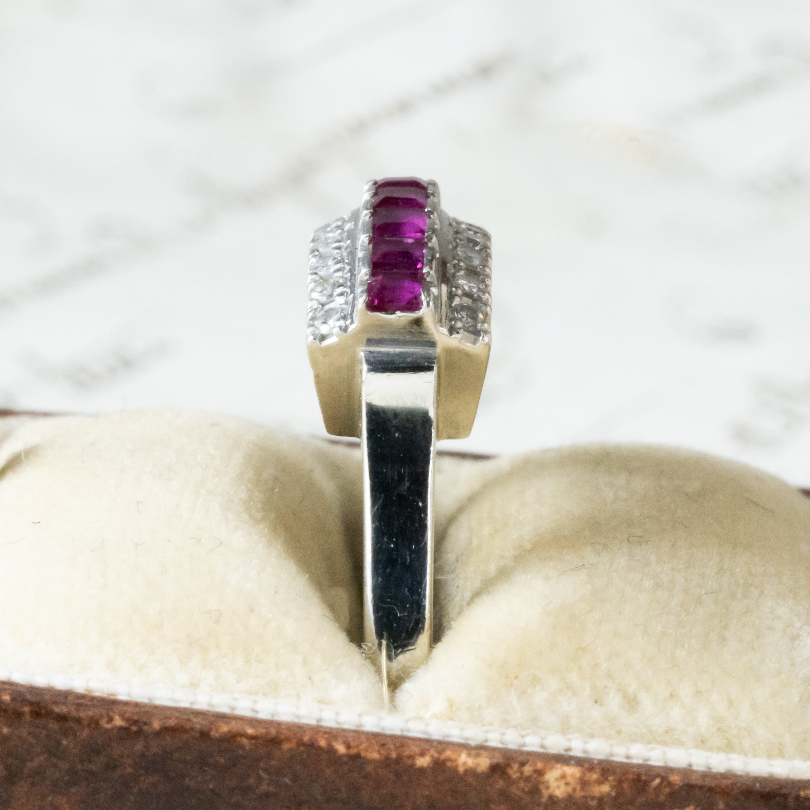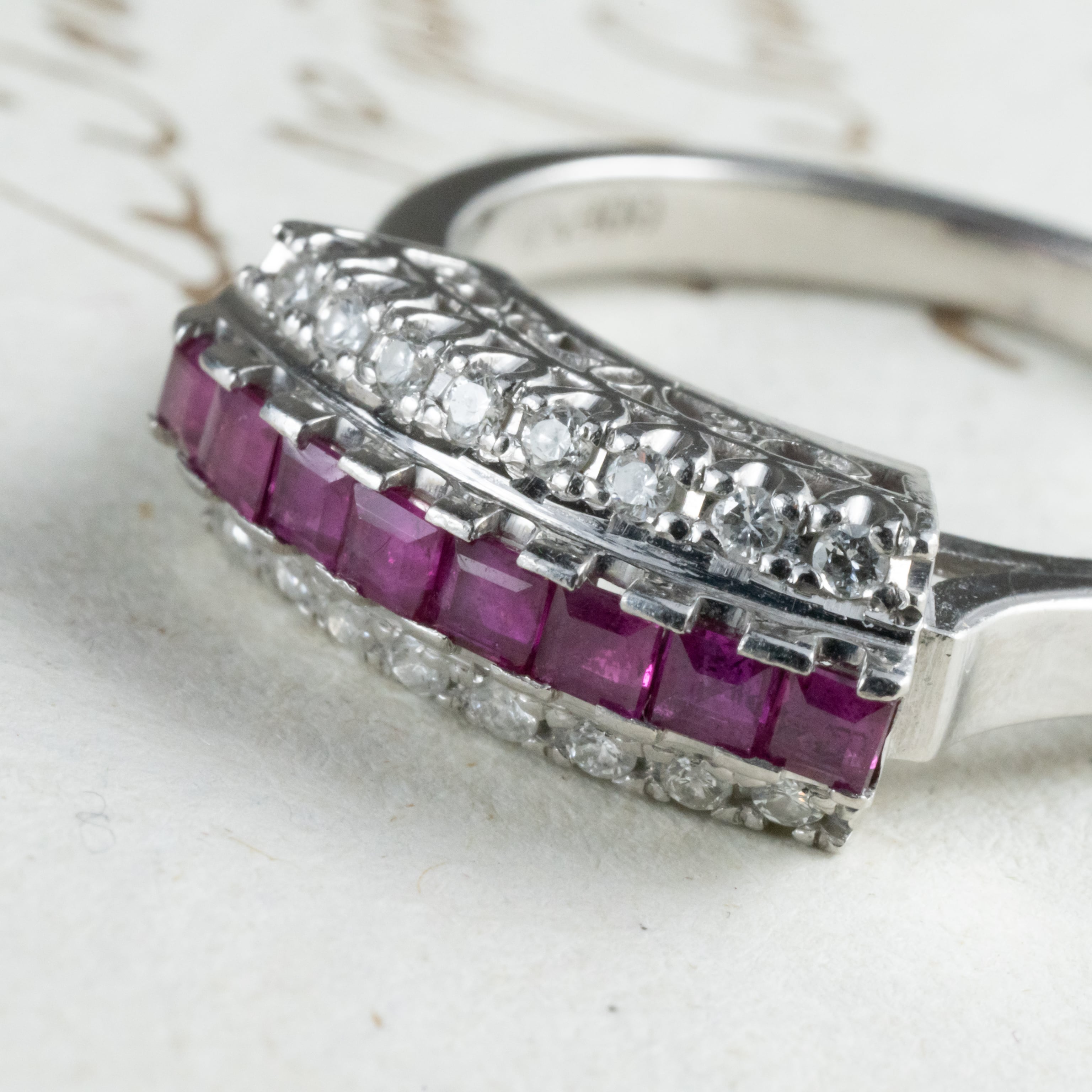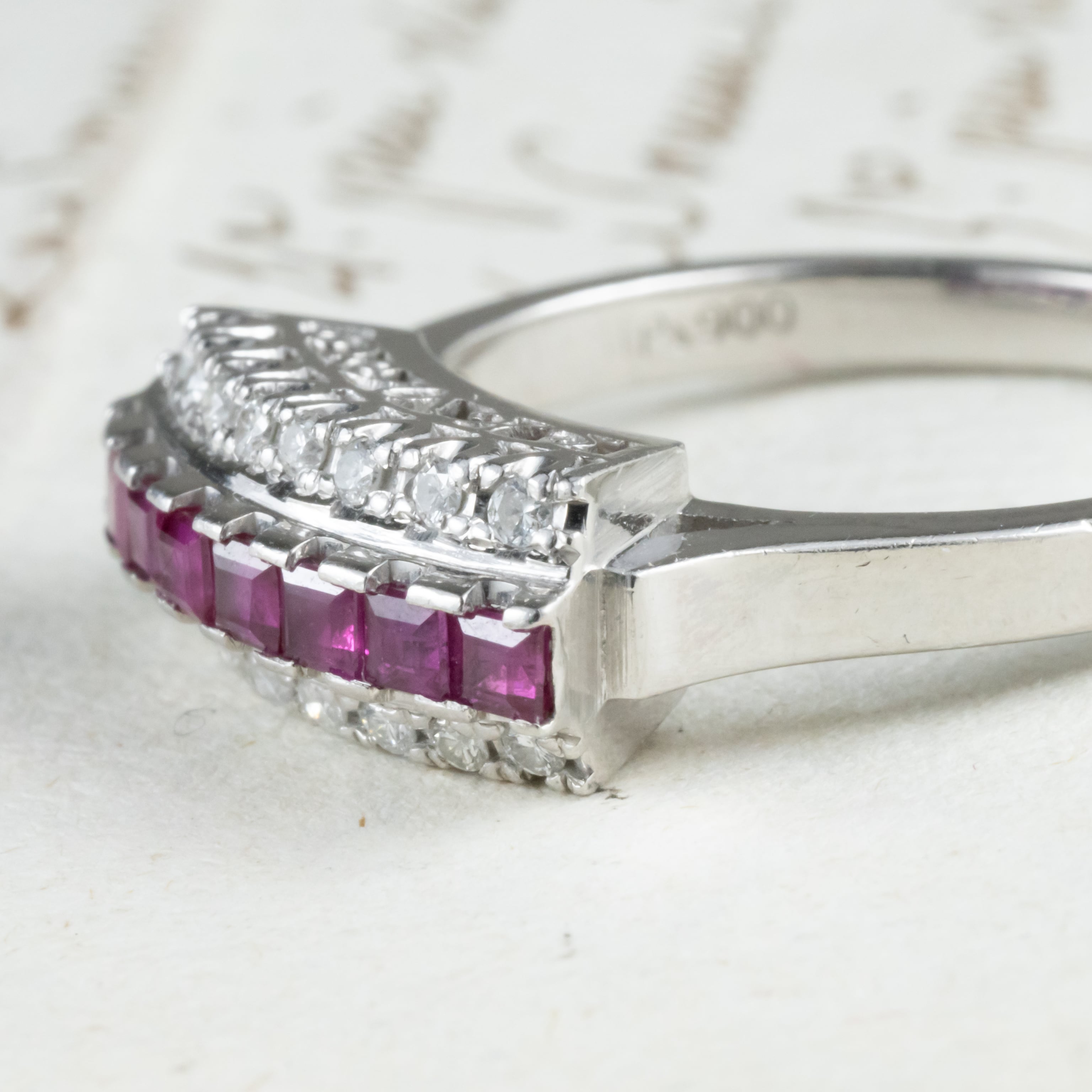 昭和レトロ デザイン リング Pt900 ルビー 0.56 ダイヤ 0.15 〜二色の石の輝きがきれいな一文字リング〜 MOR00484