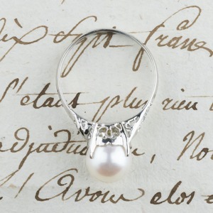 【日本の作品】昭和レトロ ヴィンテージ 一粒パール 透かしデザイン リング 指輪 Pt900 真珠 アコヤパール 8.2mm珠 ダイヤモンド 〜静けさの中に宿る穏やかな輝き〜 DR00438