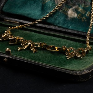 リボンモチーフとハートモチーフが交互に並んだアンティークネックレスをご紹介します。