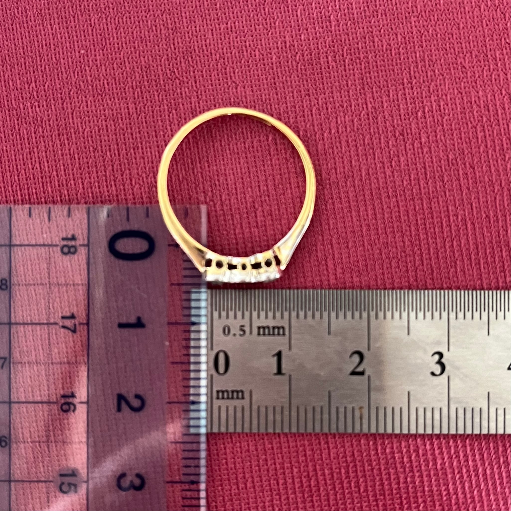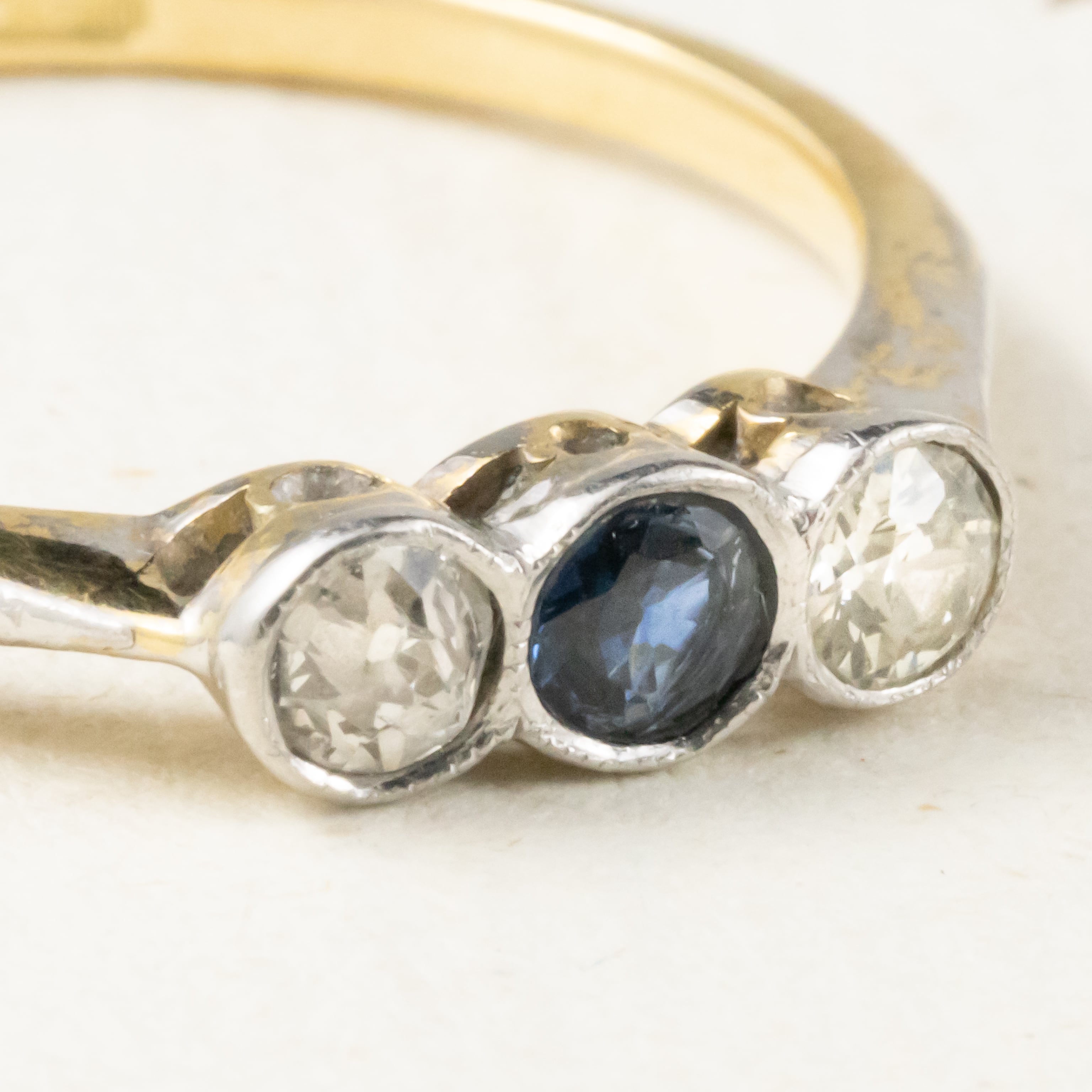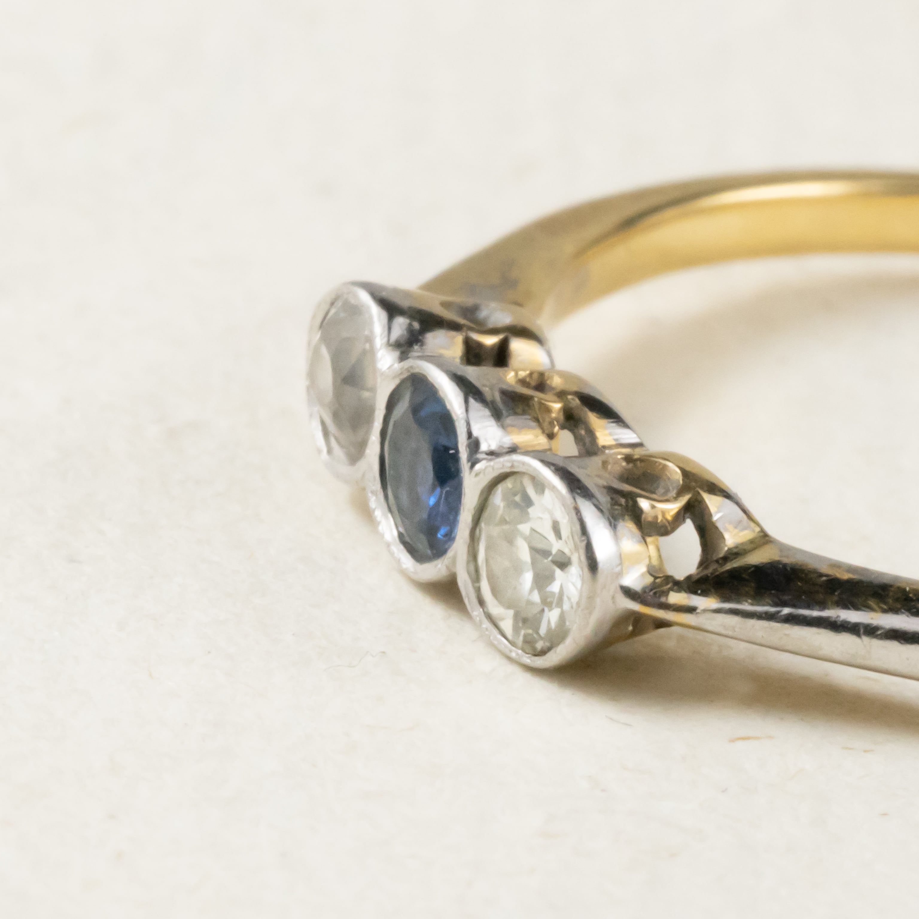 イギリス K18 アンティークリング 3ストーン ~ロマンティックブルーサファイアとオールドヨーロピアンカットが織りなす輝き~ DR00550