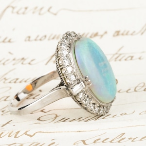 昭和レトロ デザインリング Pt オパール ダイヤモンド 〜大粒オパールに職人の技光る透かしデザイン〜 MR00710
