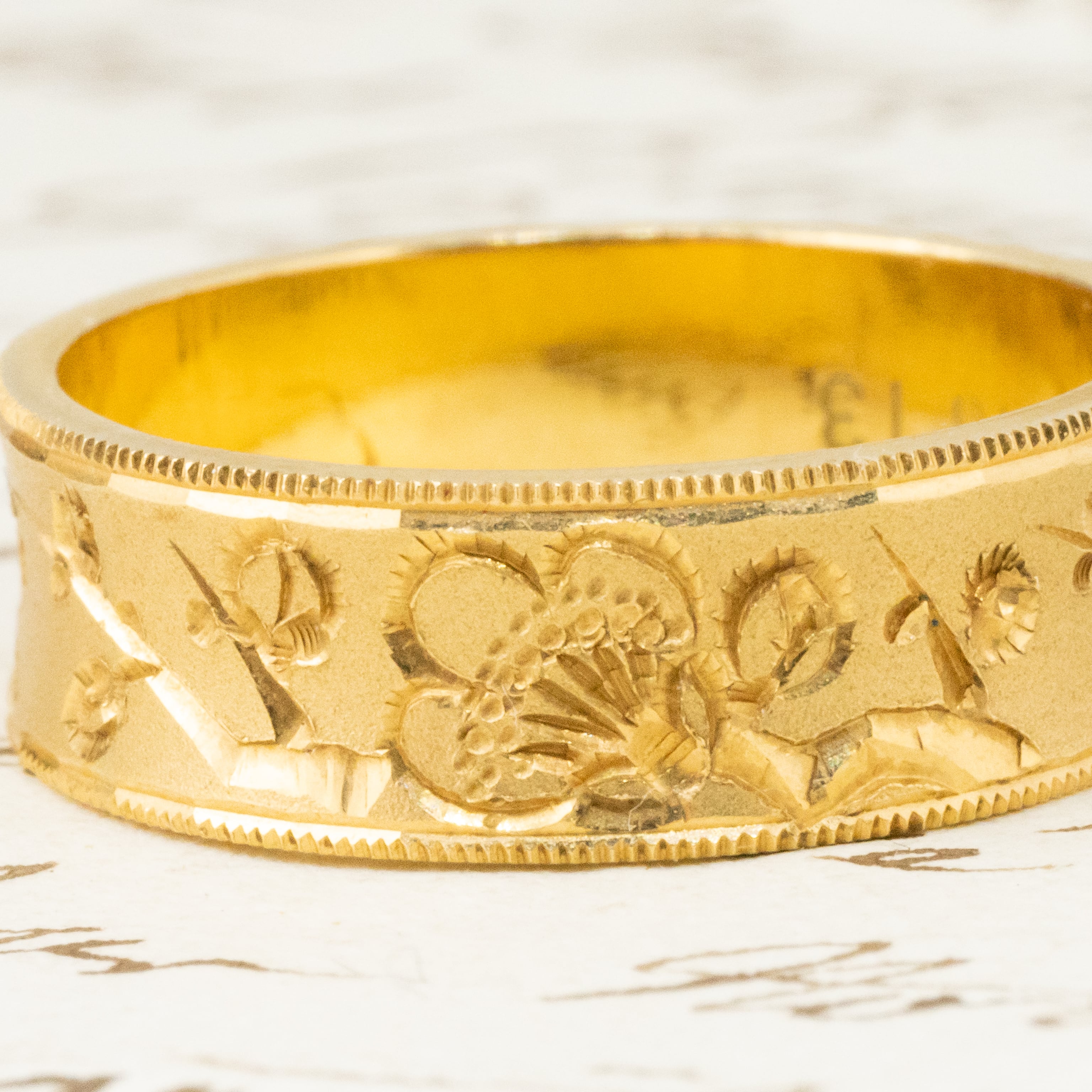 和彫り ヴィンテージ レトロ デザイン リング K18 梅柄 〜TOEI CROWN〜 OKR00097