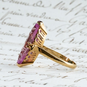 K18 昭和レトロ ピンク石 ポップでキッチュな可愛らしさ 王冠透かし DR00517