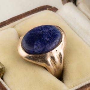 こちらのシグネットリングはソーダライトの濃いブルーと腕部分に施された3本のラインでよりクールに、そしてオーバル型の少し大ぶりな石で存在感もばっちり。