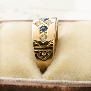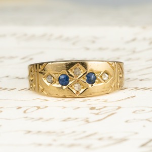 イギリス アンティーク リング 1899 K18 ダイヤ サファイヤ ヴィクトリアン エトラスカン デザイン DR00544