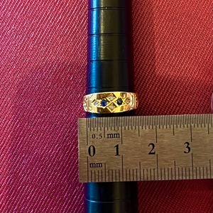 センター南北にはオールドカットダイヤモンド、東西にサファイアが、その両サイドにもオールドカットダイヤモンドがセットされています。