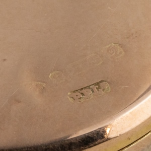 蓋部分に彫金で徽章が彫られ、土台に溶接してつけられており立体感があり、内側は背面側にカバーが付いていて写真などを入れられるようになっています。