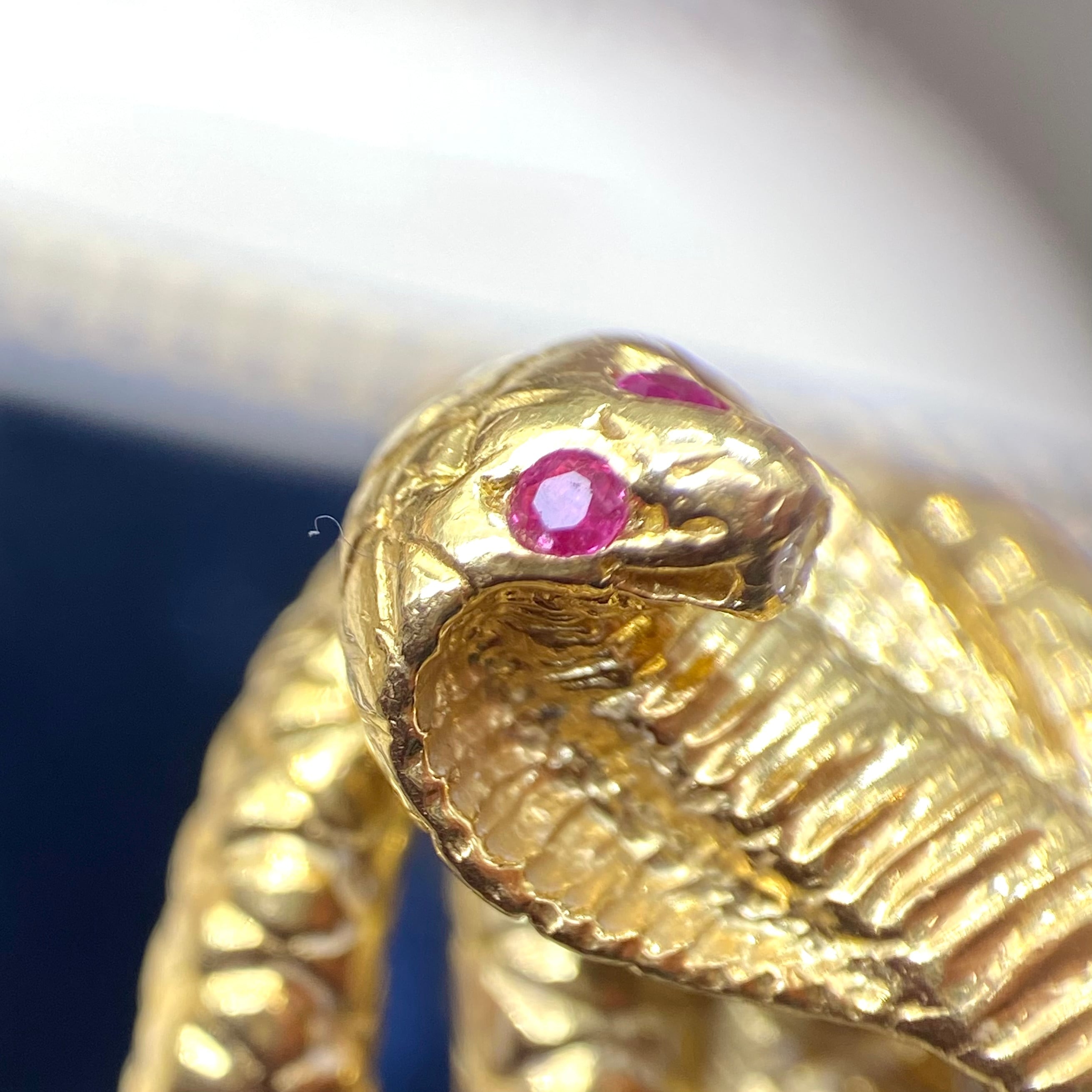 【珍指輪 日本の作品】K18 コブラ!リング(スネイクリング)美しいルビーのお目目?ダイヤモンド(希望)は絶対離さない! レトロ★でゴージャス☆なリング MOR00543