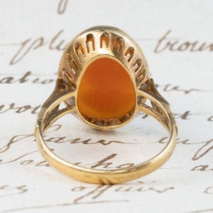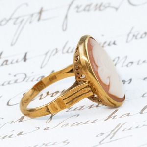 【日本の作品】昭和レトロ ヴィンテージ カメオ デザイン リング K18 シンプルなカメオと透かしの美しいデザイン R21002