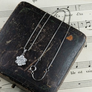 【日本の作品】お花 小花 クラスターデザイン ヴィンテージ ネックレス ペンダント Pt900/Pt850 D1.02 MOP00239