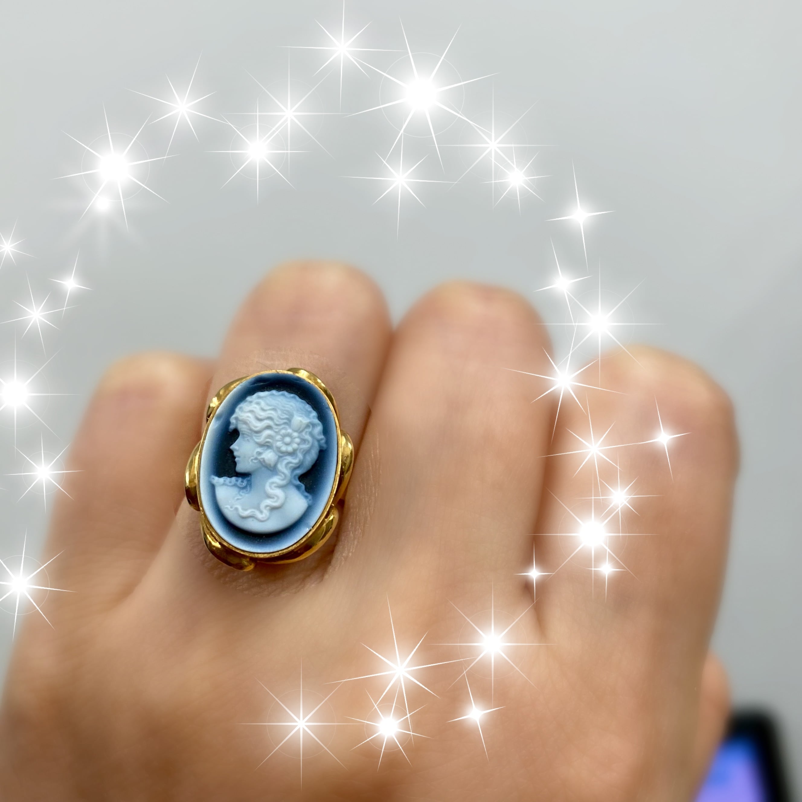#K18 #レトロ #夏コーデ#ブルーカメオ #ストーンカメオ #ブルーメノウリング#アンティークリング#18金ジュエリー#夏の指先コーデ#大人可愛いリング#ヴィンテージジュエリー#ジュエリーのある暮らし#一点ものジュエリー #清涼感 #一点もの #昭和ジュエリー #レトロデザイン