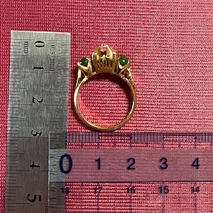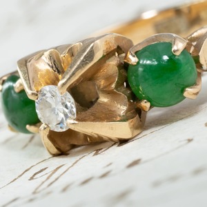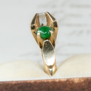 【日本の作品】昭和レトロ デザイン 箱爪 リング ヴィンテージ 指輪 K18 ダイヤ 翡翠 OKR00111