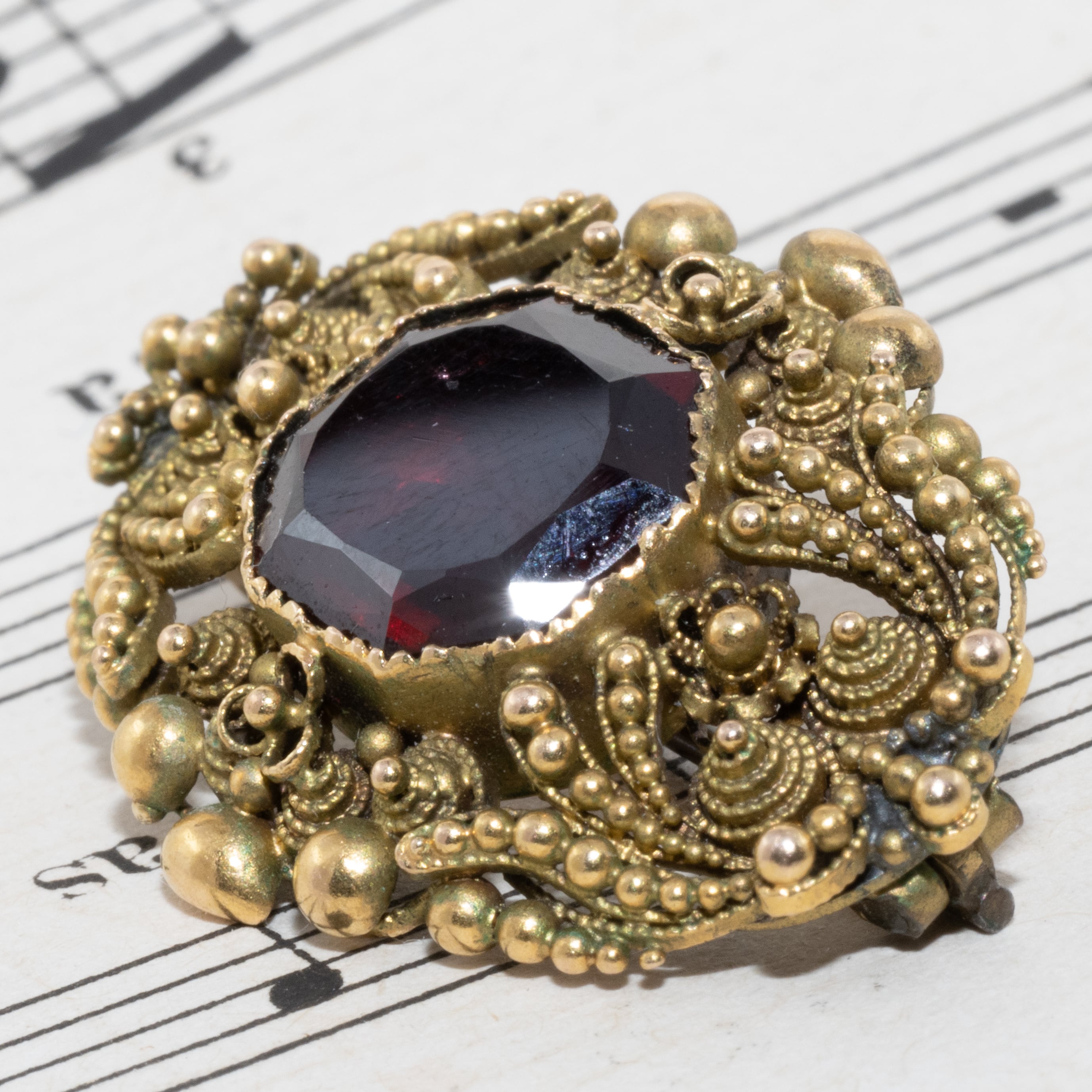 赤ワインような…しっとりとしたビロードのような深みある色合いが非常に魅力的なガーネットのアンティークブローチ。