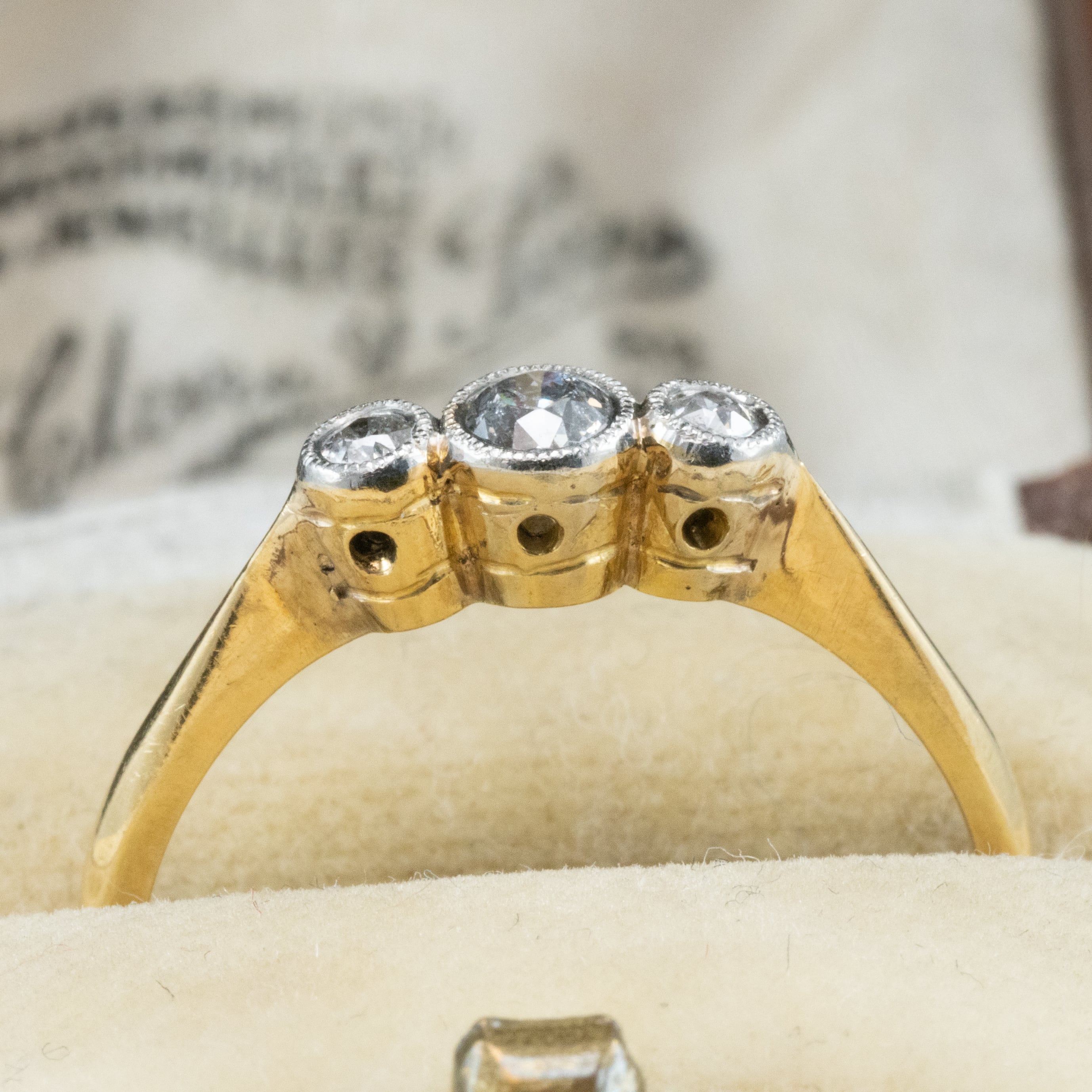 イギリス アンティーク 3stone リング K18 Pt オールドヨーロピアンカット ダイヤモンド 1900年前後頃 DR00612