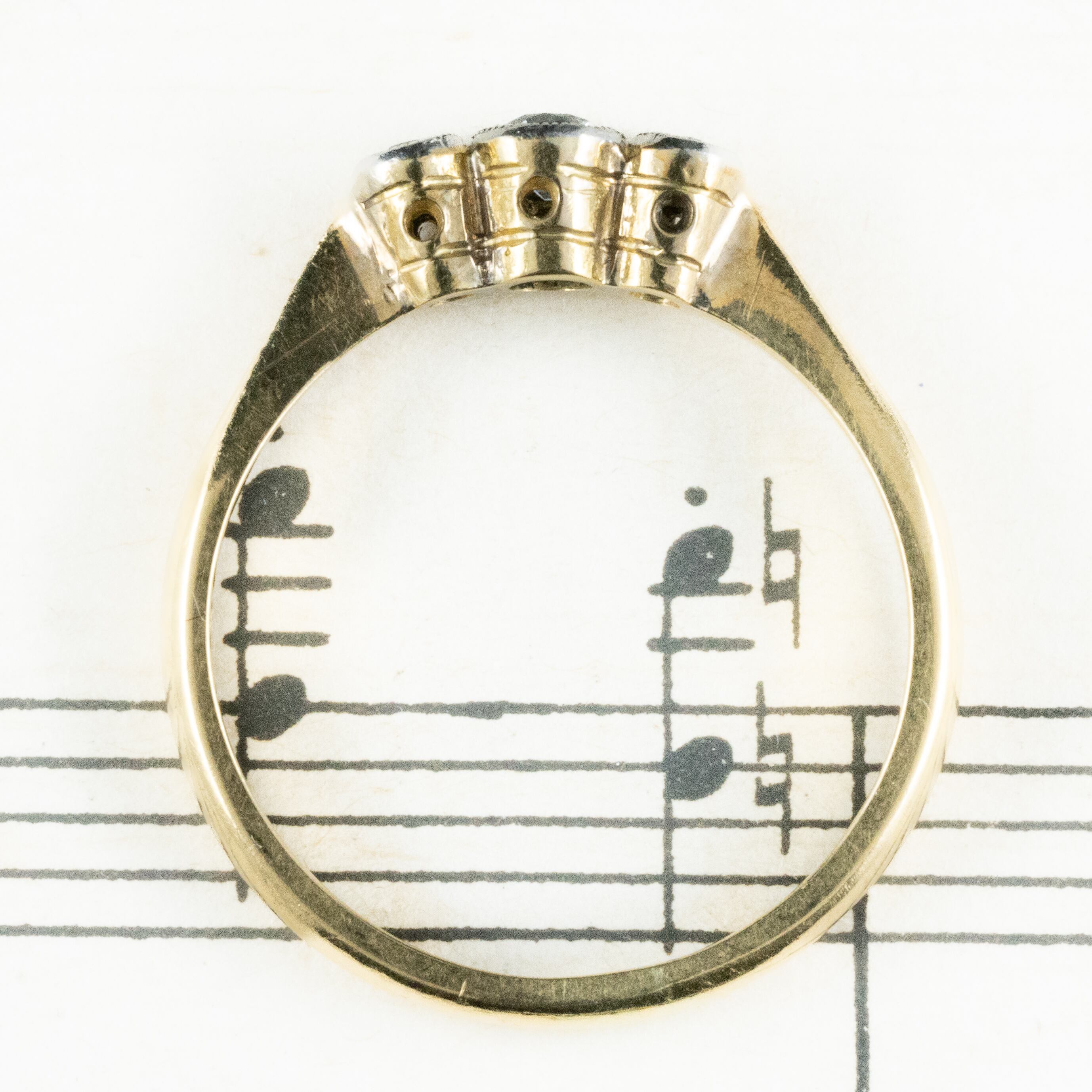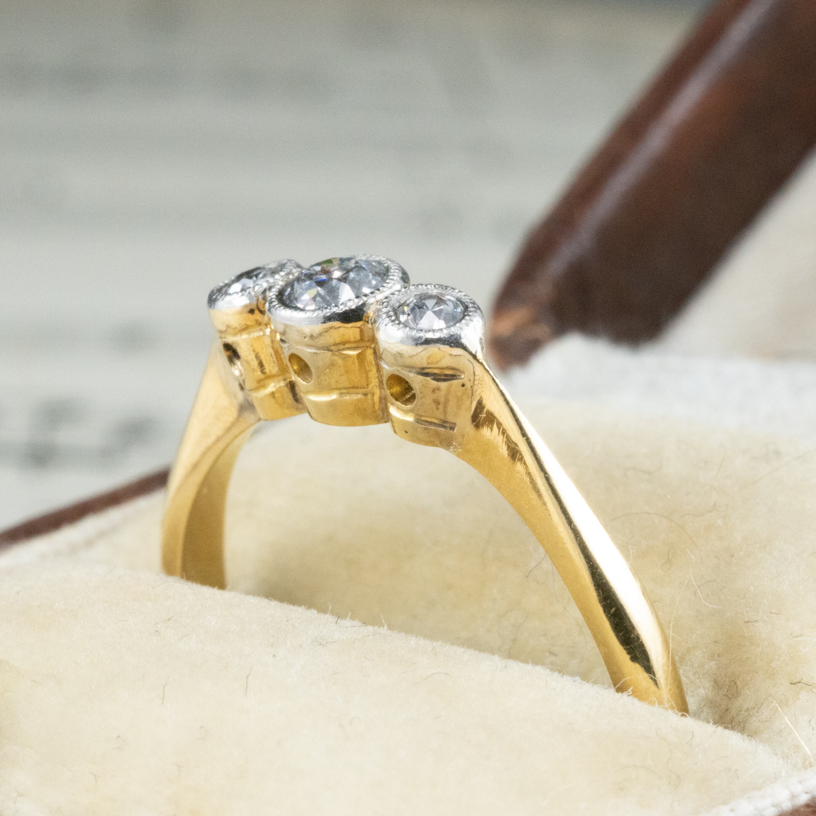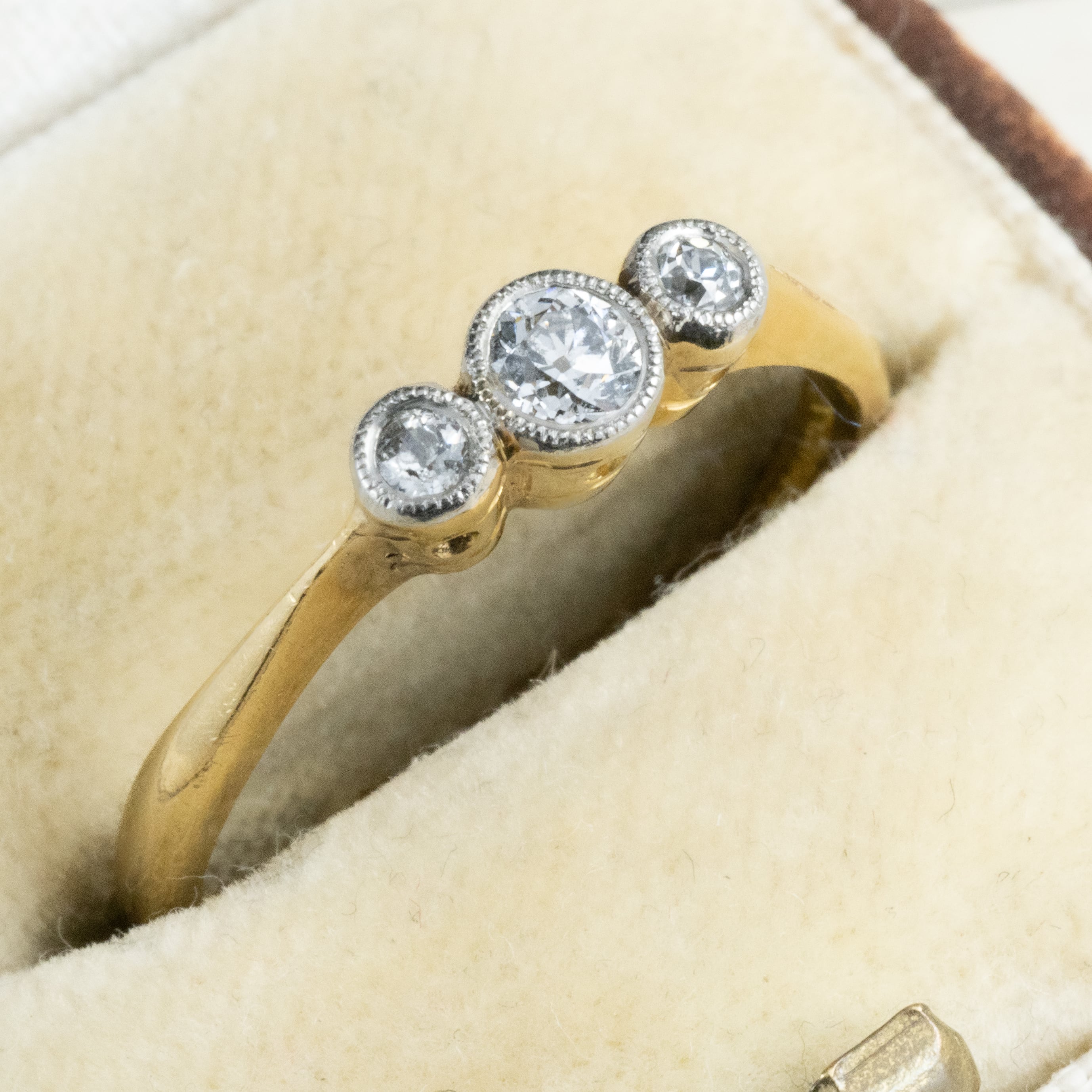 可愛い3粒のオールドヨーロピアンカットダイヤモンドが横一文字にセットされている可愛いリング。
