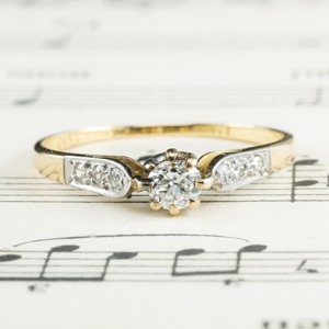 イギリス アンティーク リング 1900年初頭頃 K18 Pt オールドカット ダイヤモンド 〜クラシカルなソリテールデザインが可愛いシンプルリング〜 DR00619
