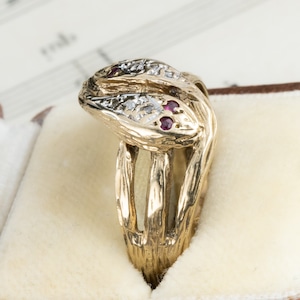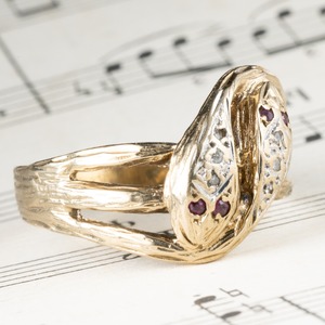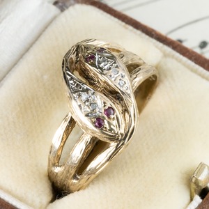 イギリス ヴィンテージ リング 1989年 K9 ルビー ダイヤモンド ダブルスネイク DR00621