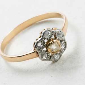 K様専用購入画面 フランス アンティーク K18 オールドローズカット テーブルカット ダイヤモンド 1800年代〜中頃 クラスター お花デザイン リング DR00299