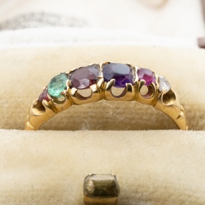 ヴィクトリアン時代、リングに留めた各宝石の頭文字を使用して、秘密のメッセージや親愛の言葉を伝えるリングが流行しました(※1)