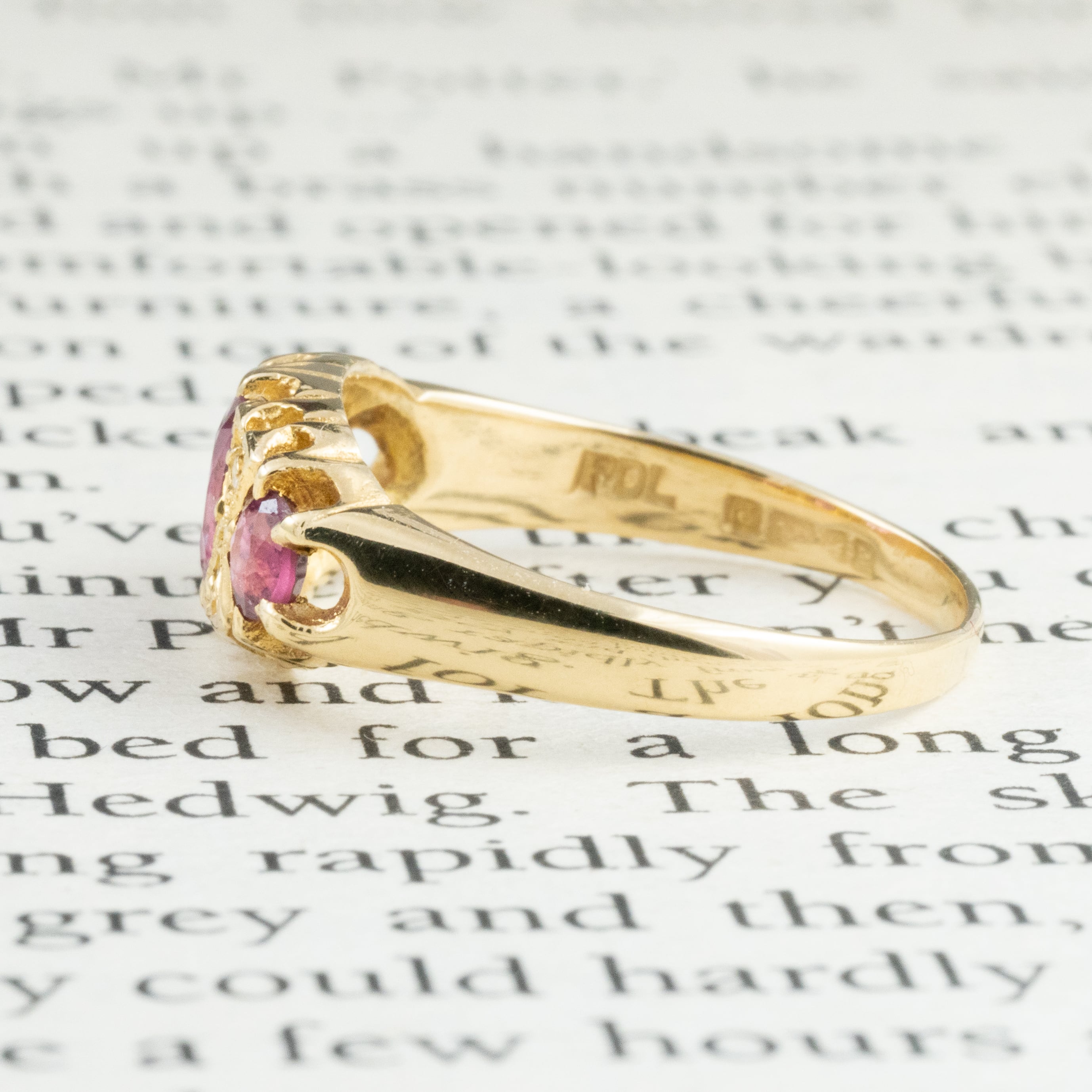 両サイドにはコロっとした可愛いルビーが2粒並び、