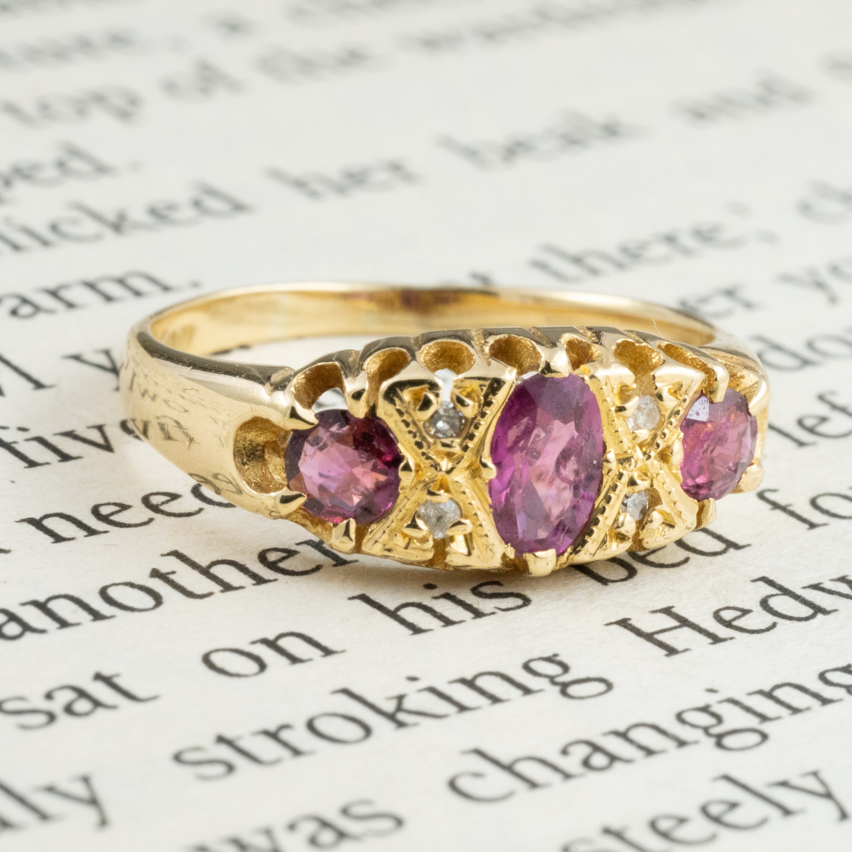 K18 イギリス ビンテージリング 〜薔薇色のルビーと可愛らしいダイヤモンドのハーモニー〜 DR00491