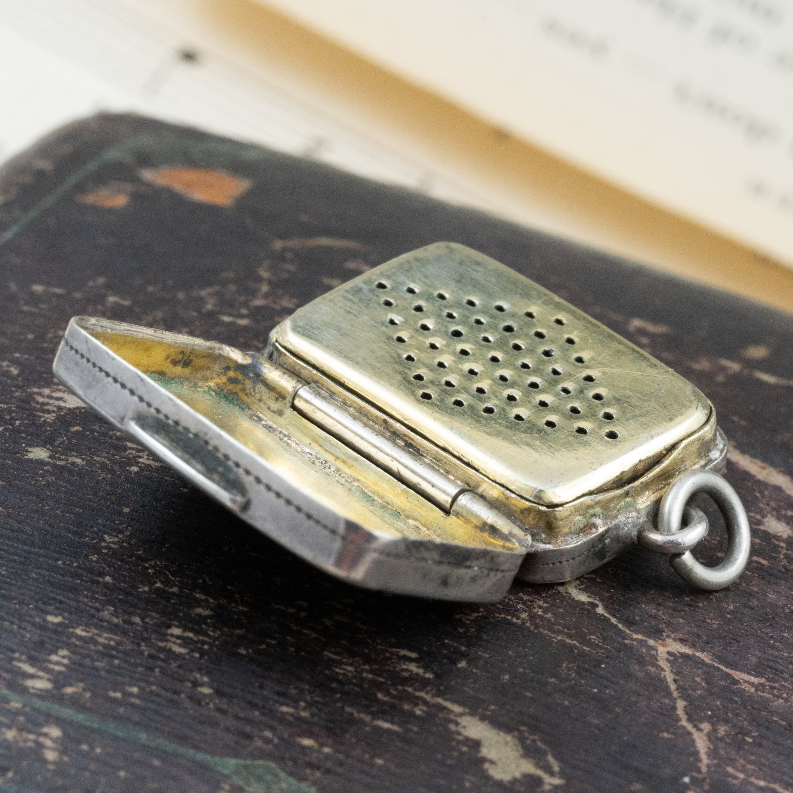 ヴィネグレットとは、名前から連想されるように「ヴィネガー(酢)」をベースにした香料をしみこませた綿を入れて持ち歩くための小さなケースです。当時は酢酸や濃縮した香油を用いた“芳香酢”が入れられていました。