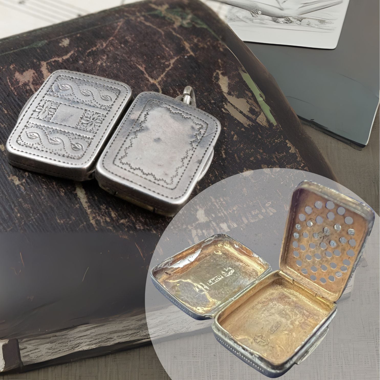 イギリス アンティーク シルバー SV ヴィネグレット 気付け薬 香水 ケース 1809年 〜職人の手仕事光る彫りの芸術〜 DP00055