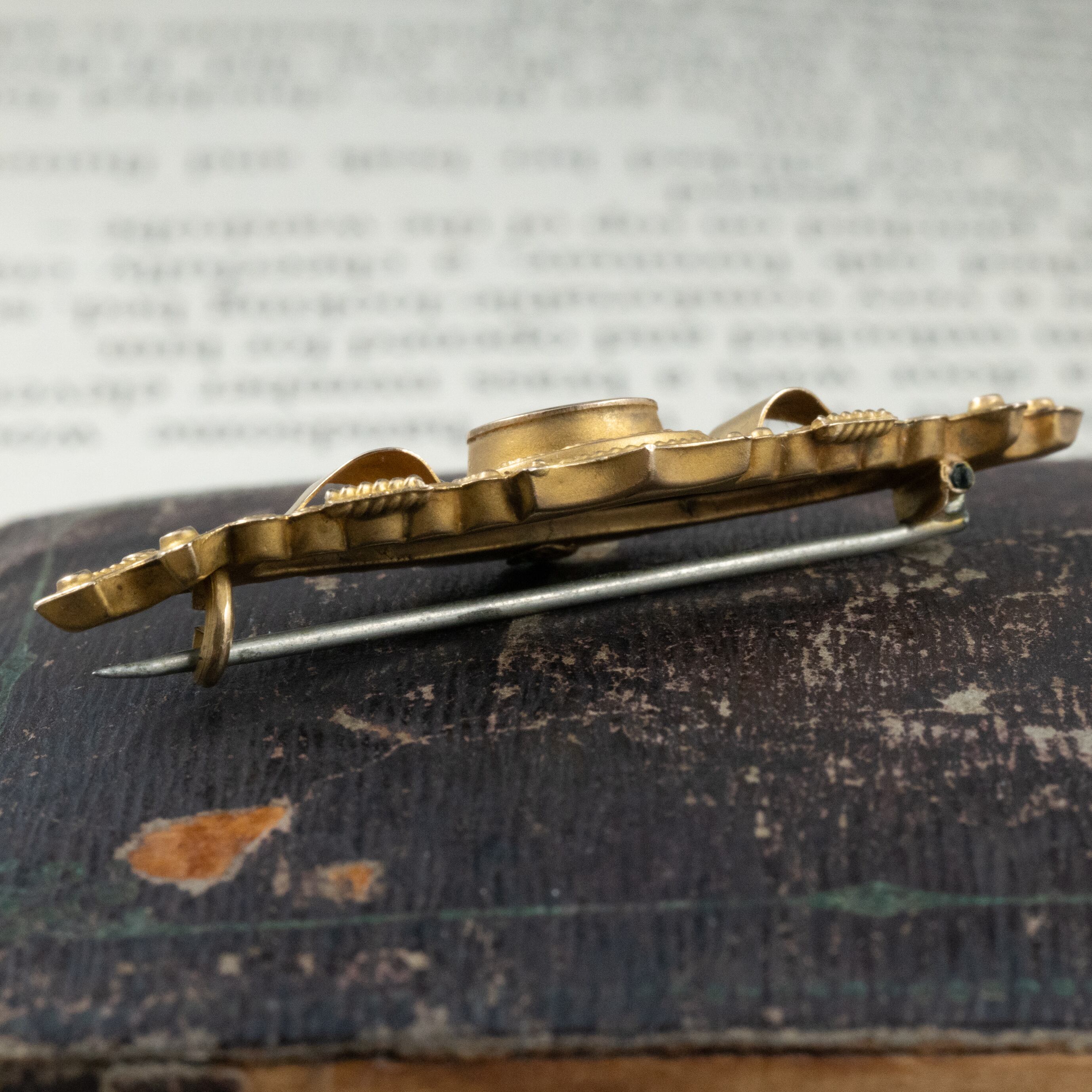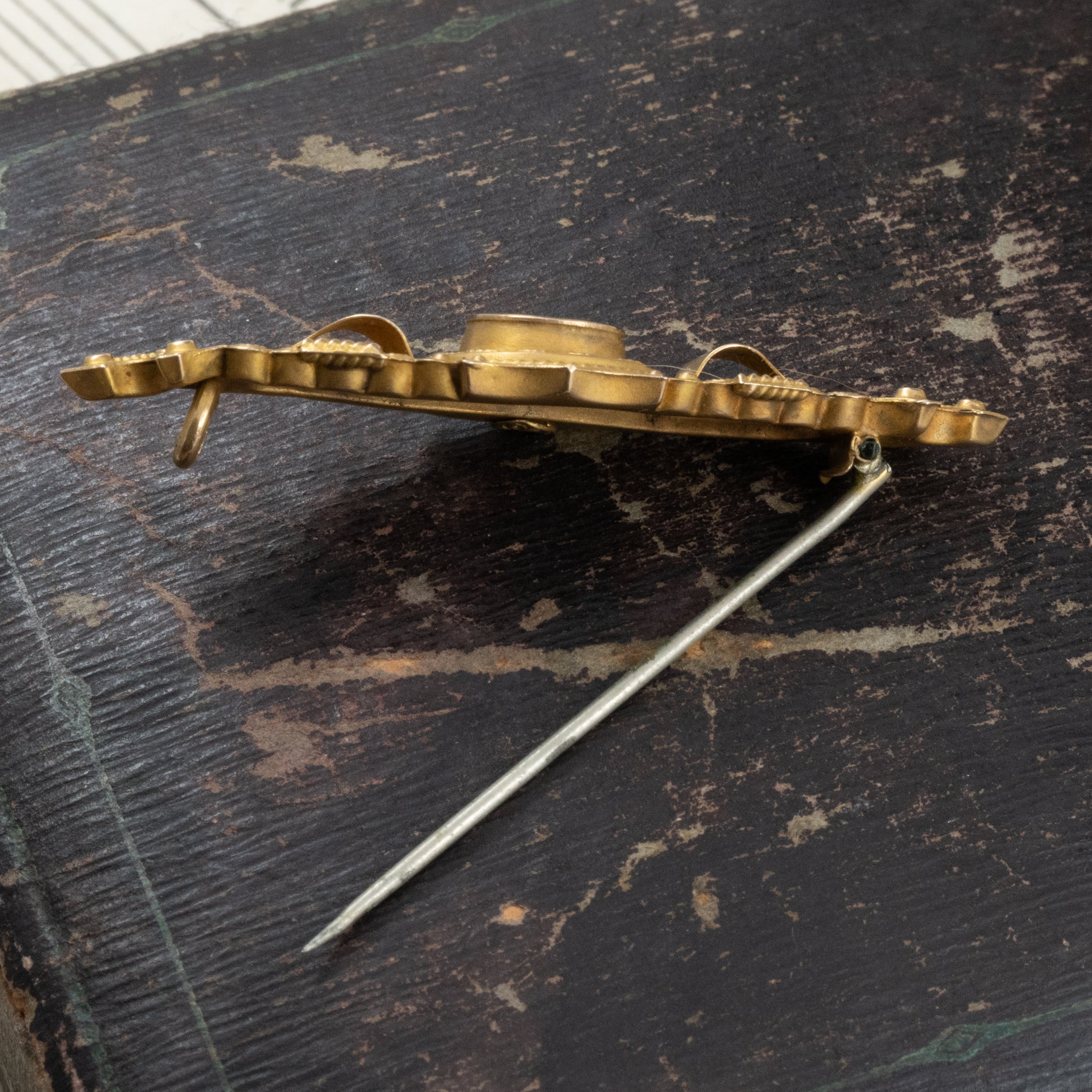 裏側のピンはアンティークならではの Cクラスプ仕様。C字型の金具に針先をひっかけて留めるしくみで、19世紀のブローチに多く見られる伝統的なスタイルです。