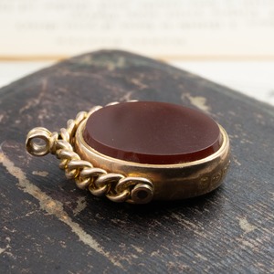 イギリス アンティーク 回転式 フォブ ペンダント トップ K9 天然アゲート ブラットストーン 1899年 DP00096