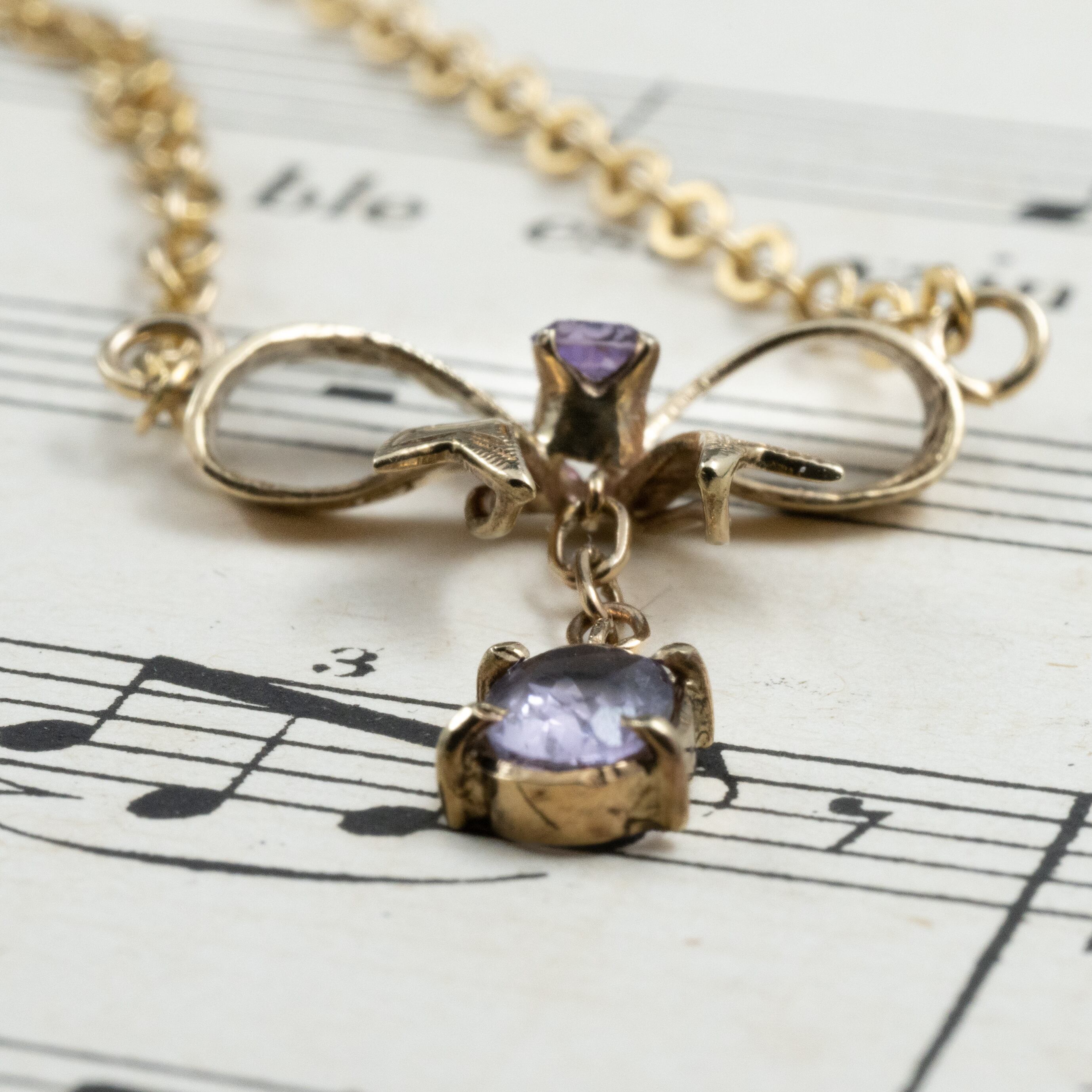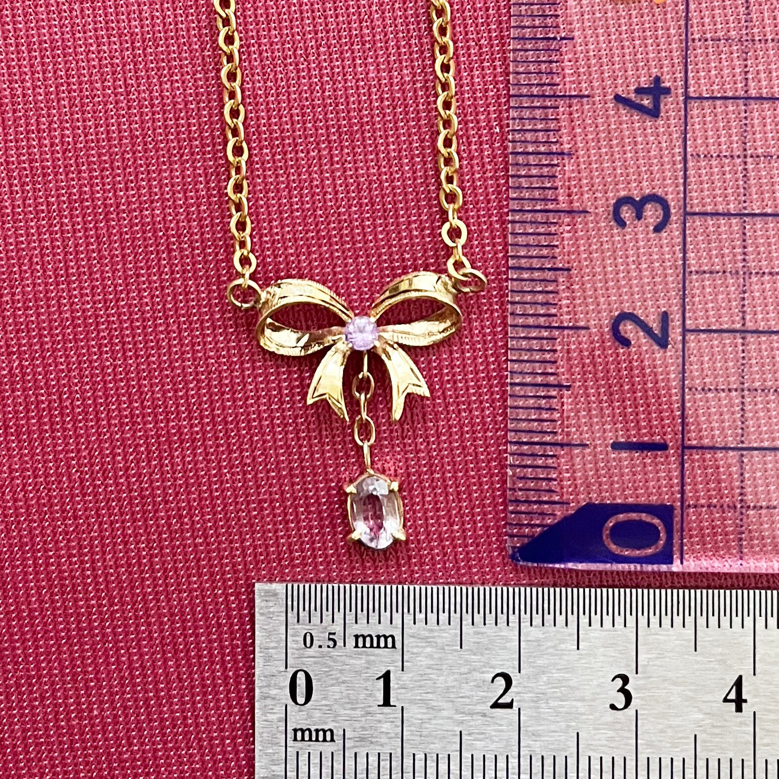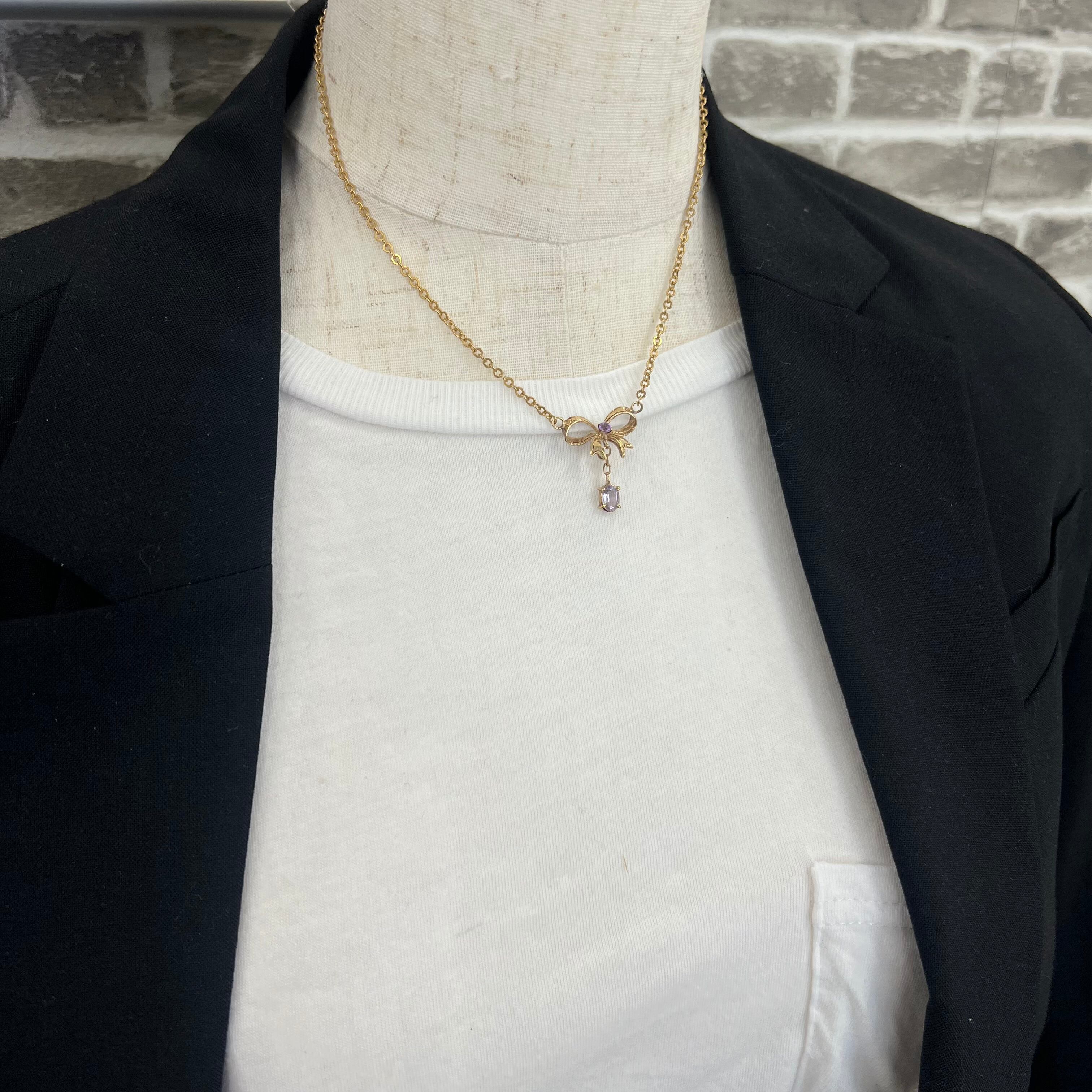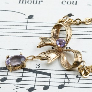 イギリス ヴィンテージ リボンデザイン ネックレス K9 アメシスト 〜あふれる大人の可愛さと清楚さを胸元に〜 MOP00243