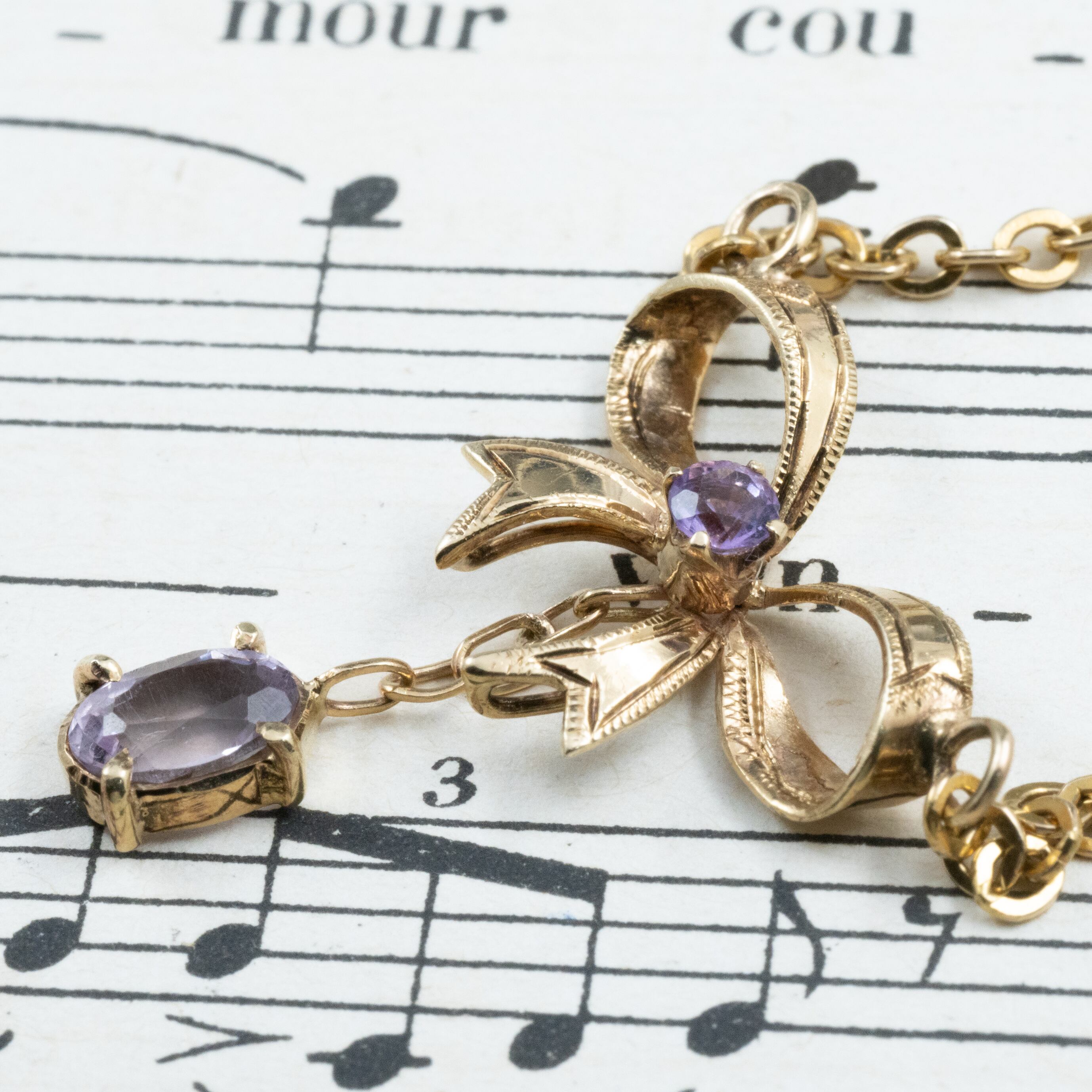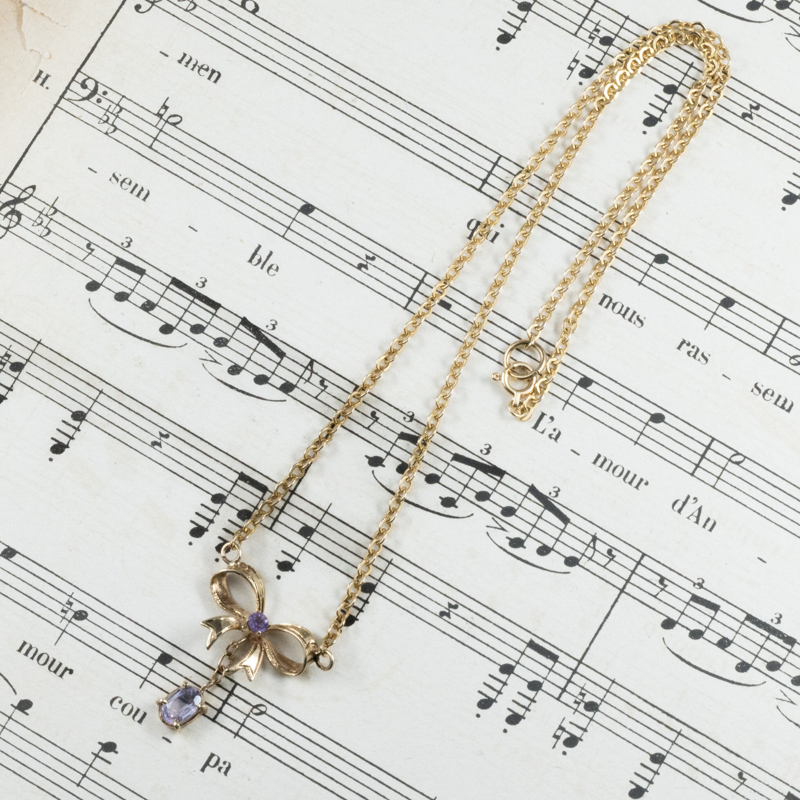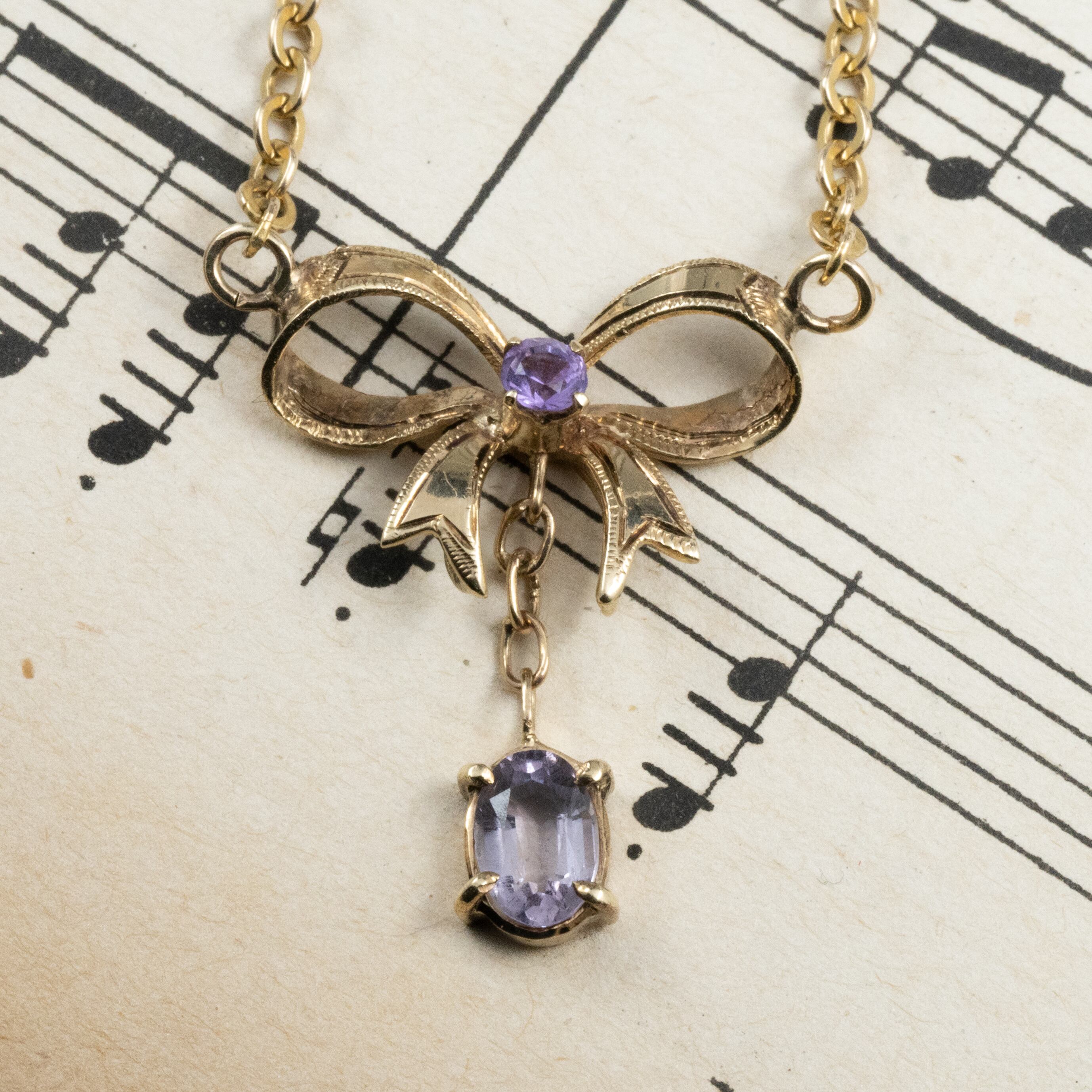 イギリス ヴィンテージ リボンデザイン ネックレス K9 アメシスト 〜あふれる大人の可愛さと清楚さを胸元に〜 MOP00243