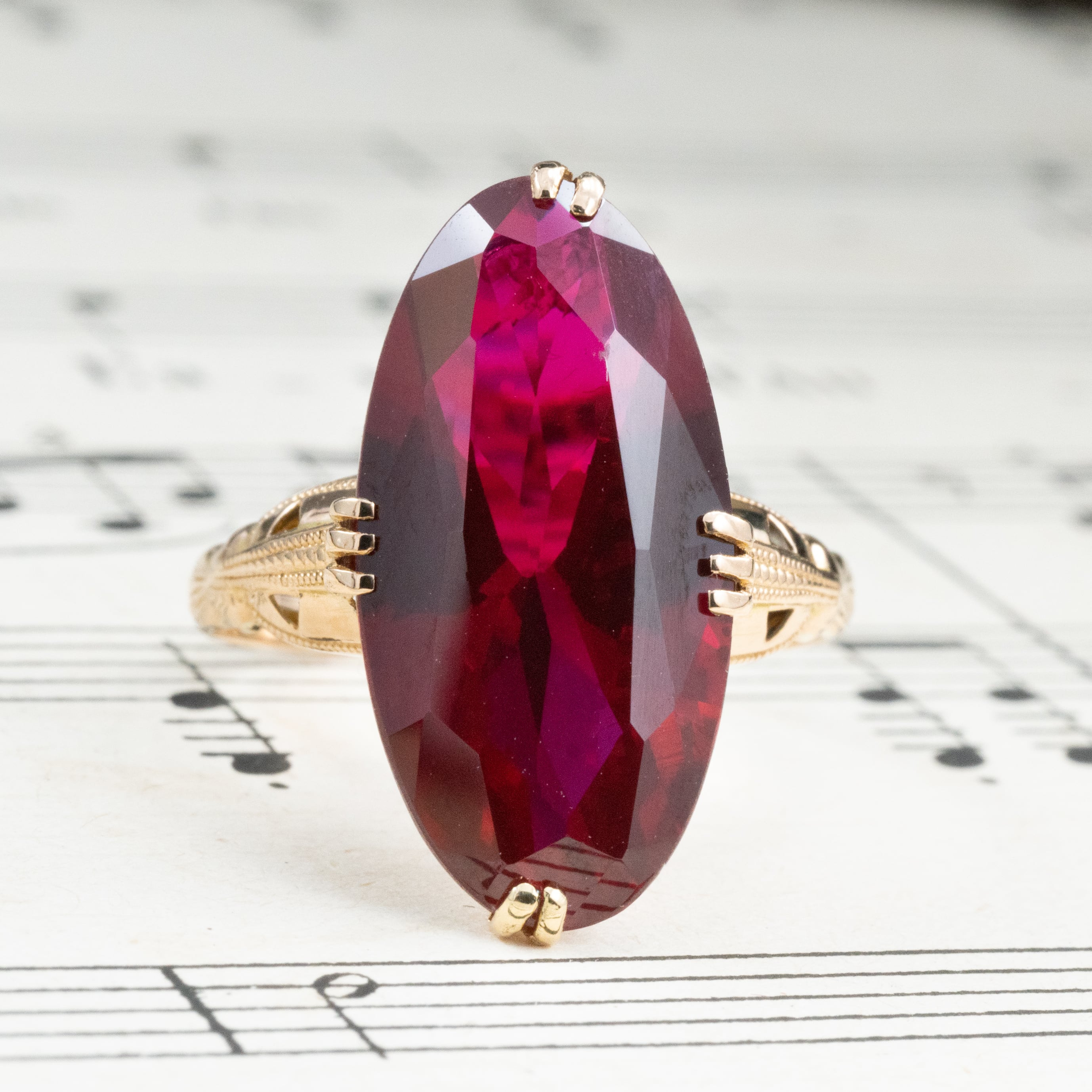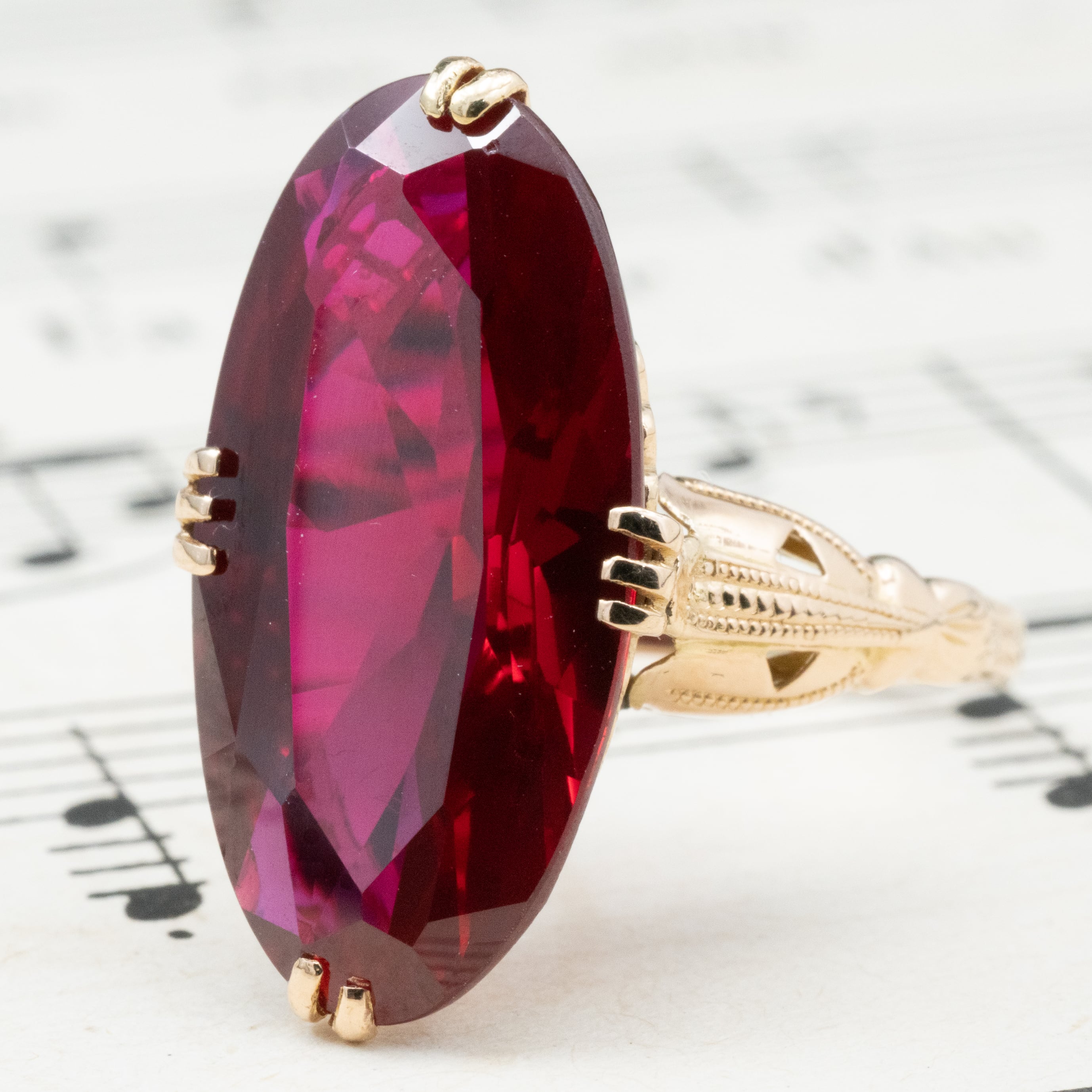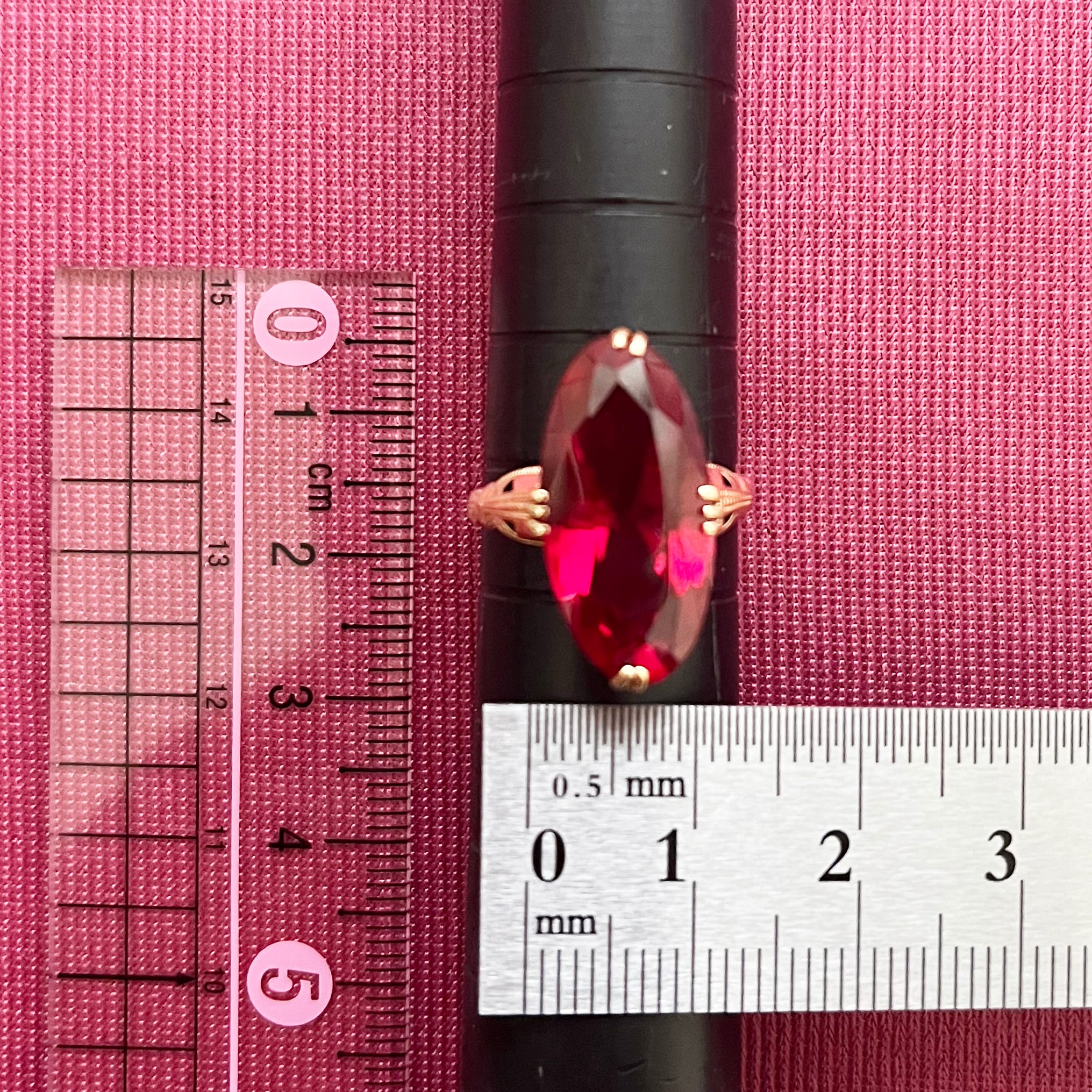 ゴールデンレッドのルビーを彷彿させるような少し深みのある赤。