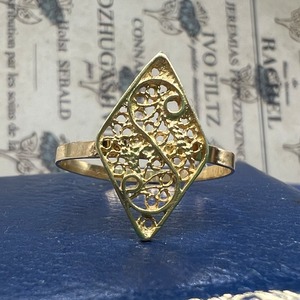 DR00650 フランス ヴィンテージ フィリグリー 透かしデザイン リング 金刺繍 細工 イニシャルリングの様なデザインが素敵