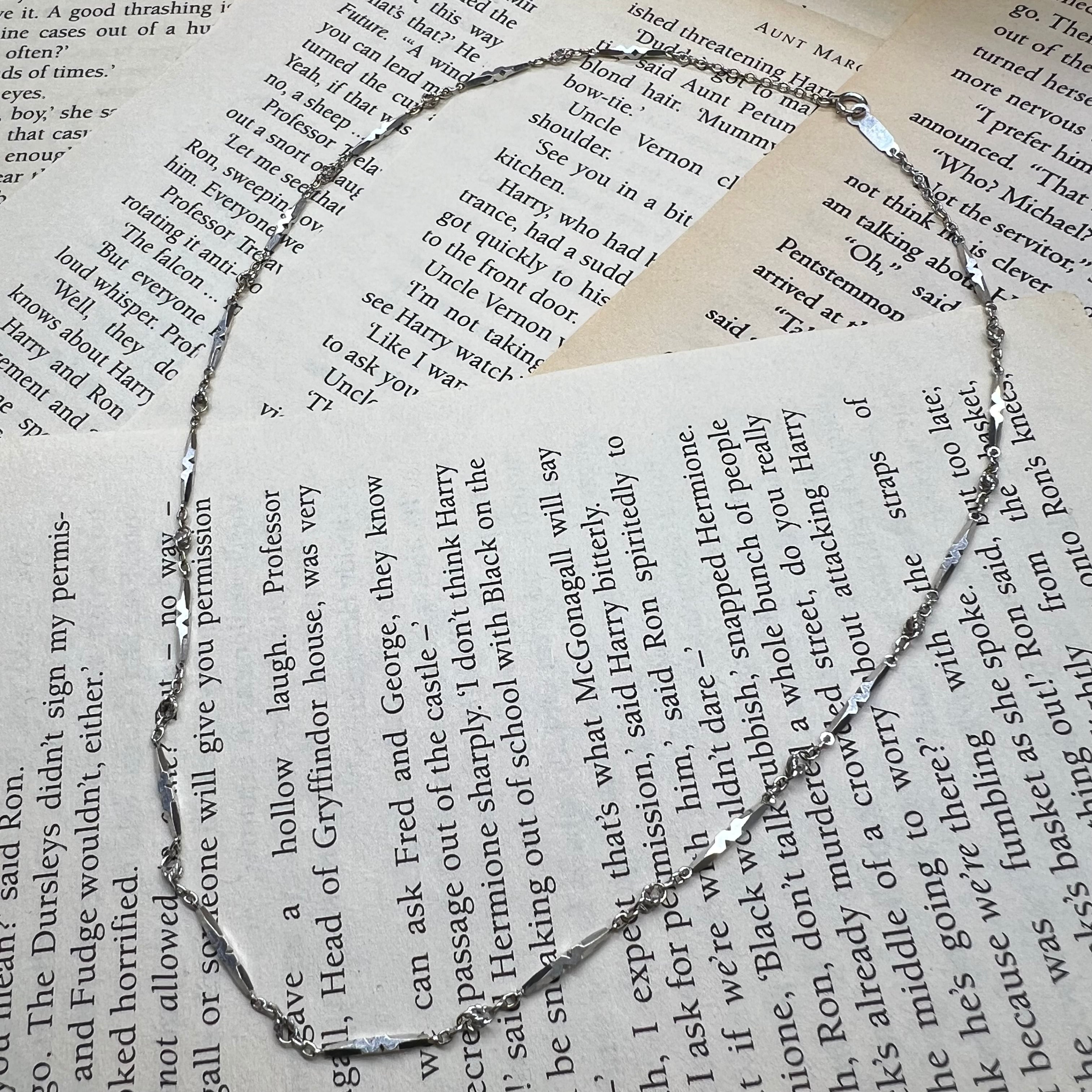 一本だけでも棒の部分のカットとチェーンの組み合わせによって表情があるデザインなのでこれ一本だけ着用しても素敵ですし、ペンダントトップと合わせたり他のチェーンネックレスと合わせてお使いいただいても素敵なとても使いやすいネックレスです。
