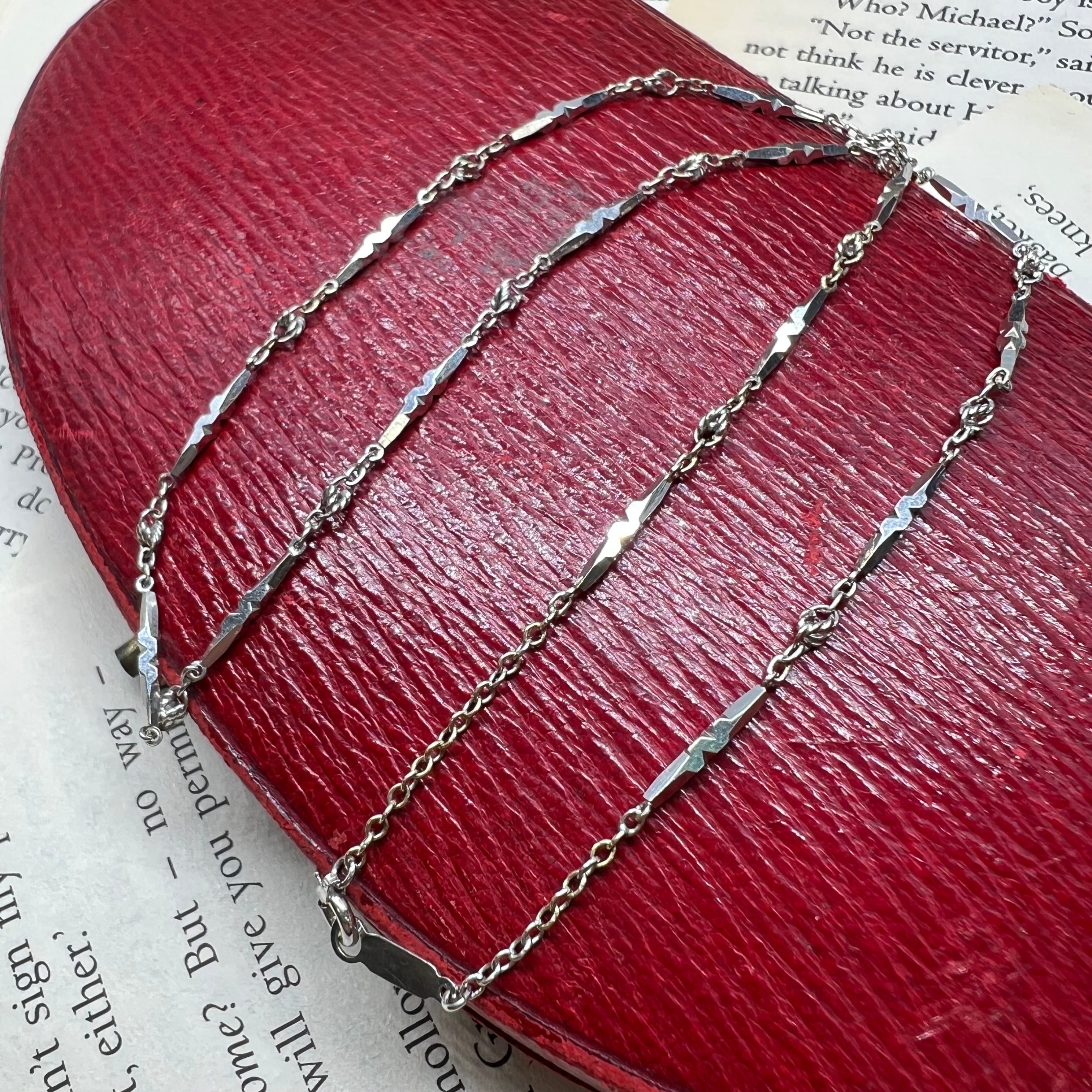 MON00258 【日本の作品】昭和レトロ ヴィンテージ 切子 キリコ カット デザイン チェーン ネックレス K14WG 40cm